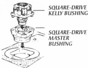 n: a master bushing that has a square recess to accept and drive the square that is on the bottom of the square-drive kell y bushing. See kelly bushing, master bushing, square-drive kelly bushing.